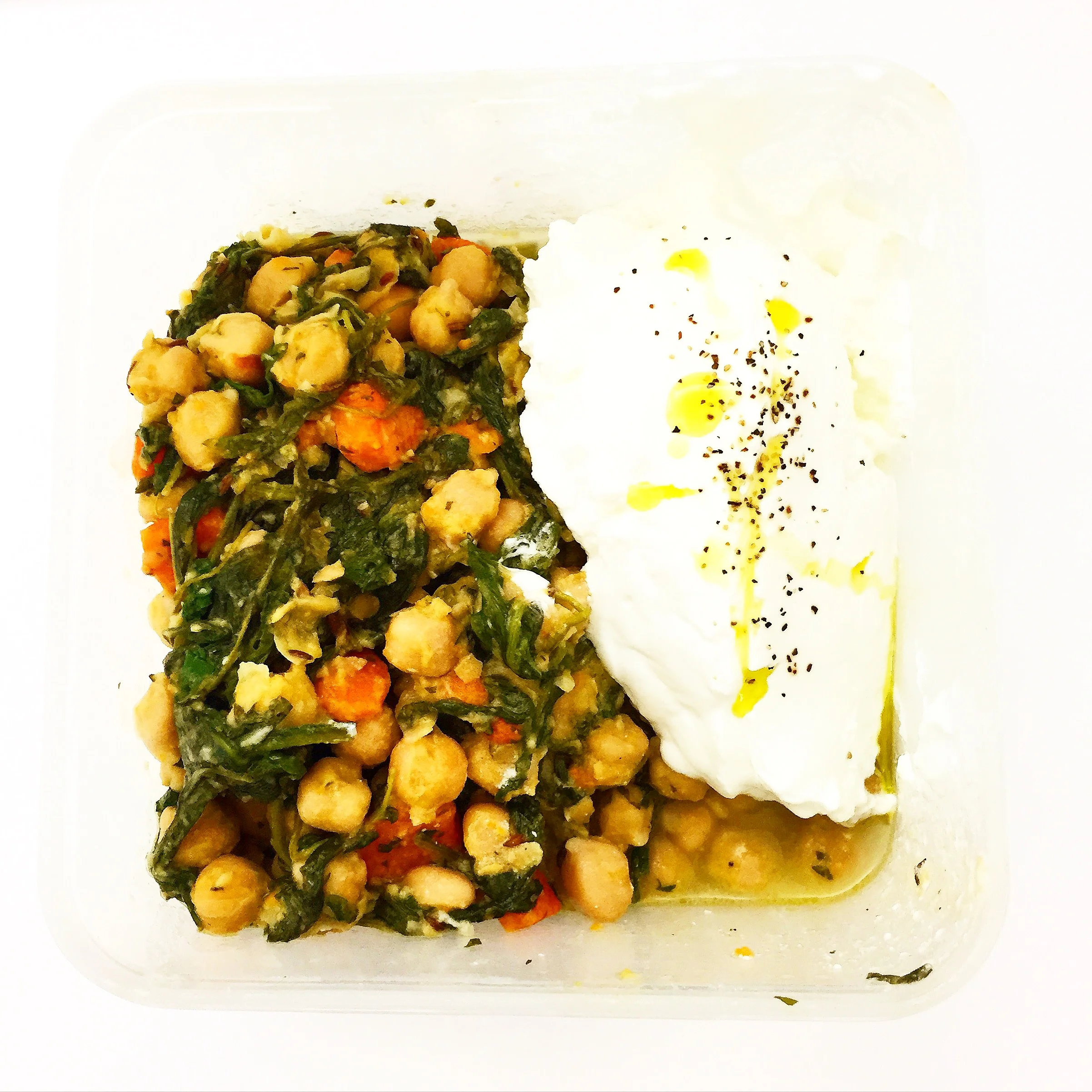I can make this sauté any night of the week in about 15 minutes by eliminating the chard prep and simplifying things by using canned chickpeas. It’s delicious and filling served at room temperature mixed with Greek yogurt to make it a full lunch.